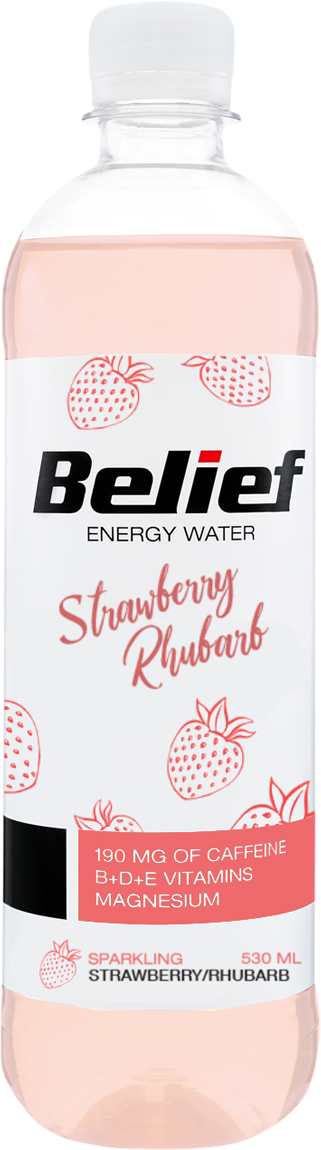 Belief Energy Water – Maasika-rabarberimaitseline madala kalorsusega jook. Kõrge kofeiinisisaldus (36mg/100ml). Ei ole soovitatav lastele, rasedatele ega rinnaga toitvatele naistele. Tarbida mõõdukalt.